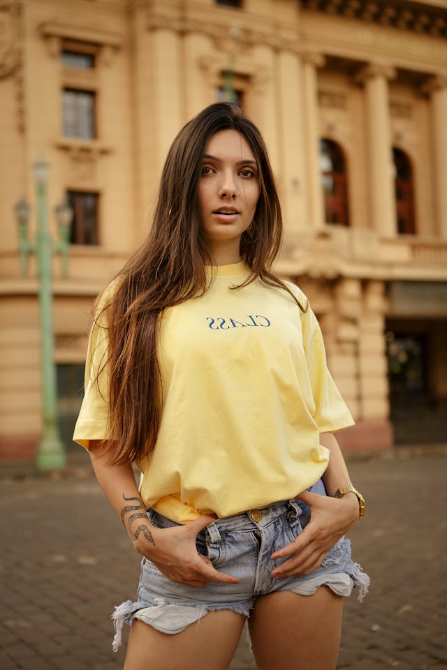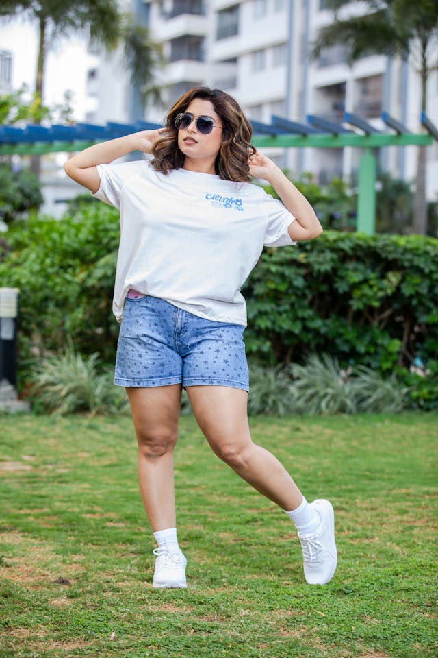 Pair your tee with matching or high-waisted shorts. Choose elastic waistbands for extra comfort. Soft, flowy shorts move with you and won’t stick to your skin. You can go for fun colors, pastel tones, or even simple neutrals depending on your style.